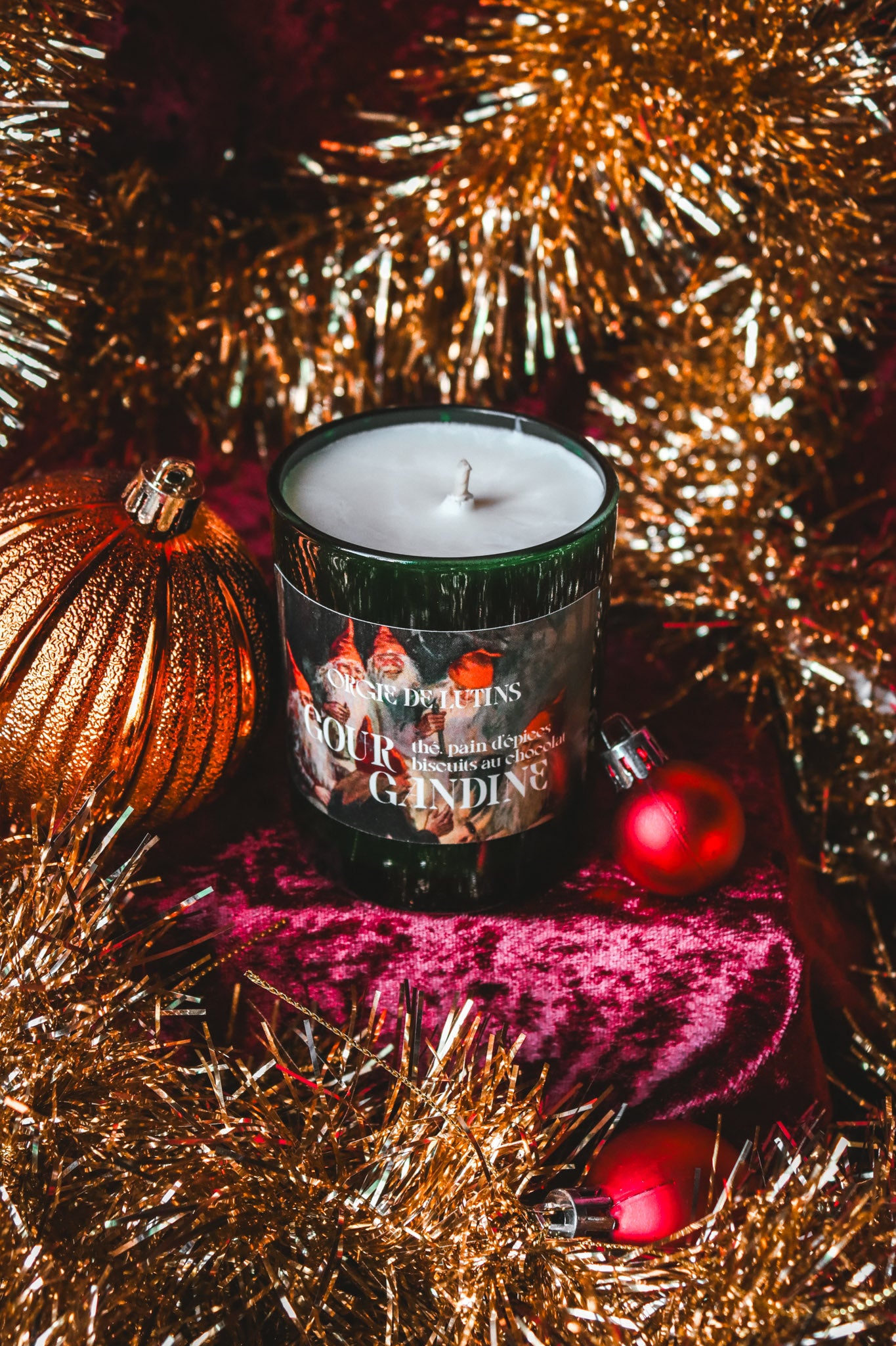 Cette bougie sent le Thé, pain d'épices, et biscuits au chocolat